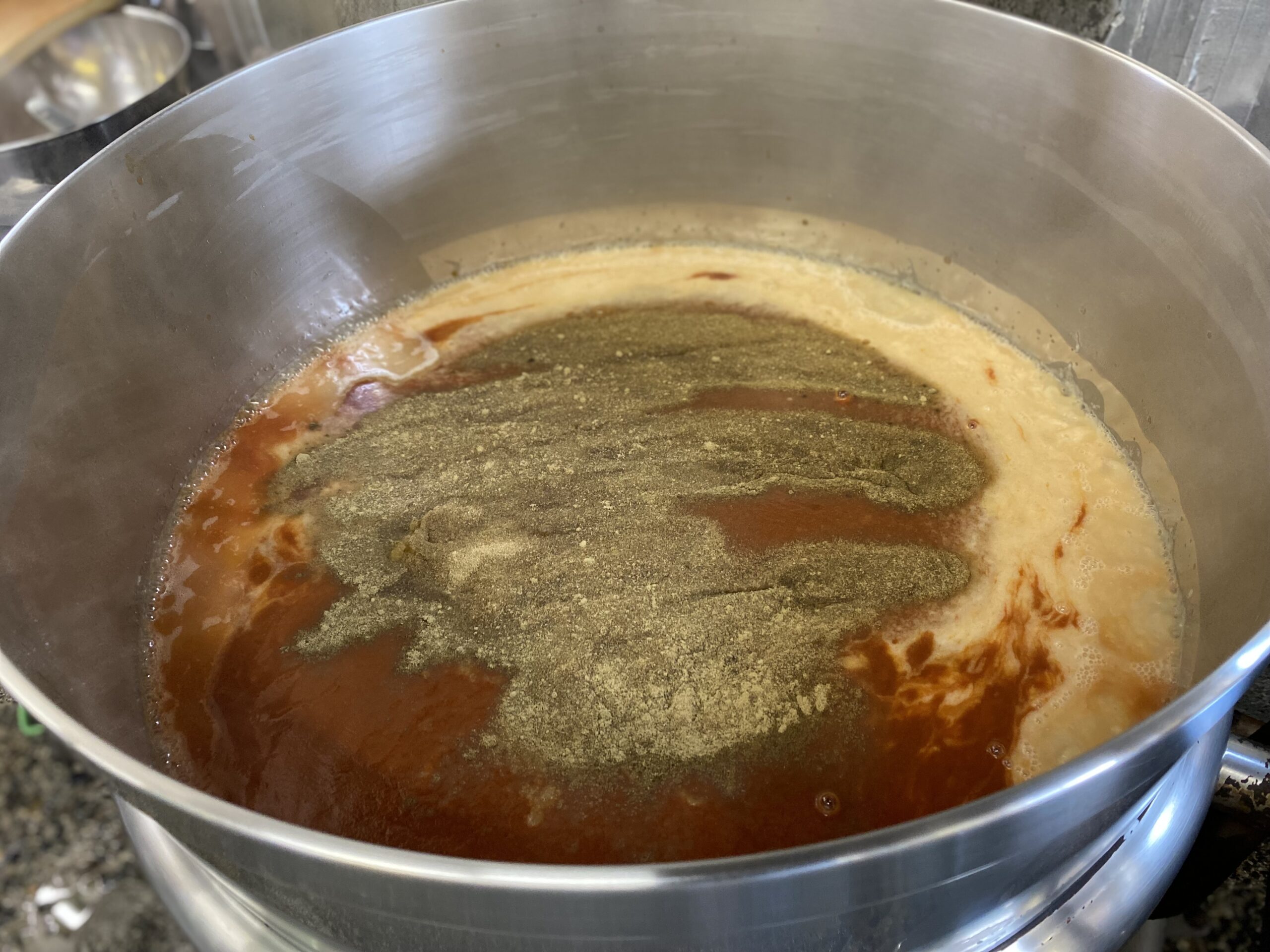 暫く煮込んでいきます。しばらくして沸騰が進むと、工場中がスパイスとハーブのなんとも言えないいい匂いに包まれました。