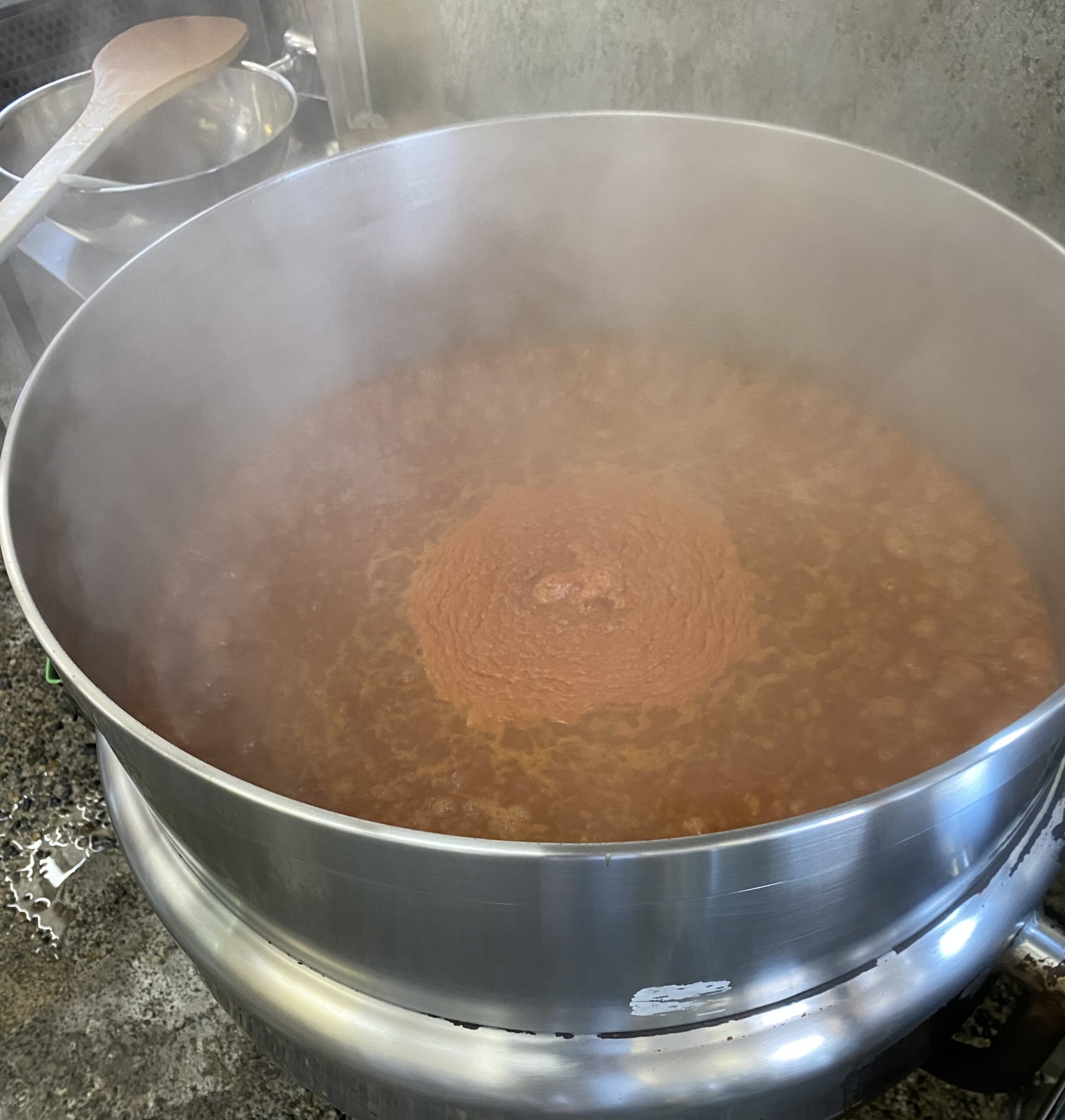 ご担当の女性は可愛らしい30代前半位の方かしら。いつも甘酒ケチャップの製造の担当をしてくださっているとのことです。女性らしい味わいはこういうところでも出るのかしらと妙に納得。なれた手つきで着々と製造が始まります。