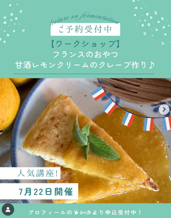 【甘酒レモンクリームクレープ作り】ワークショップのお知らせです✨